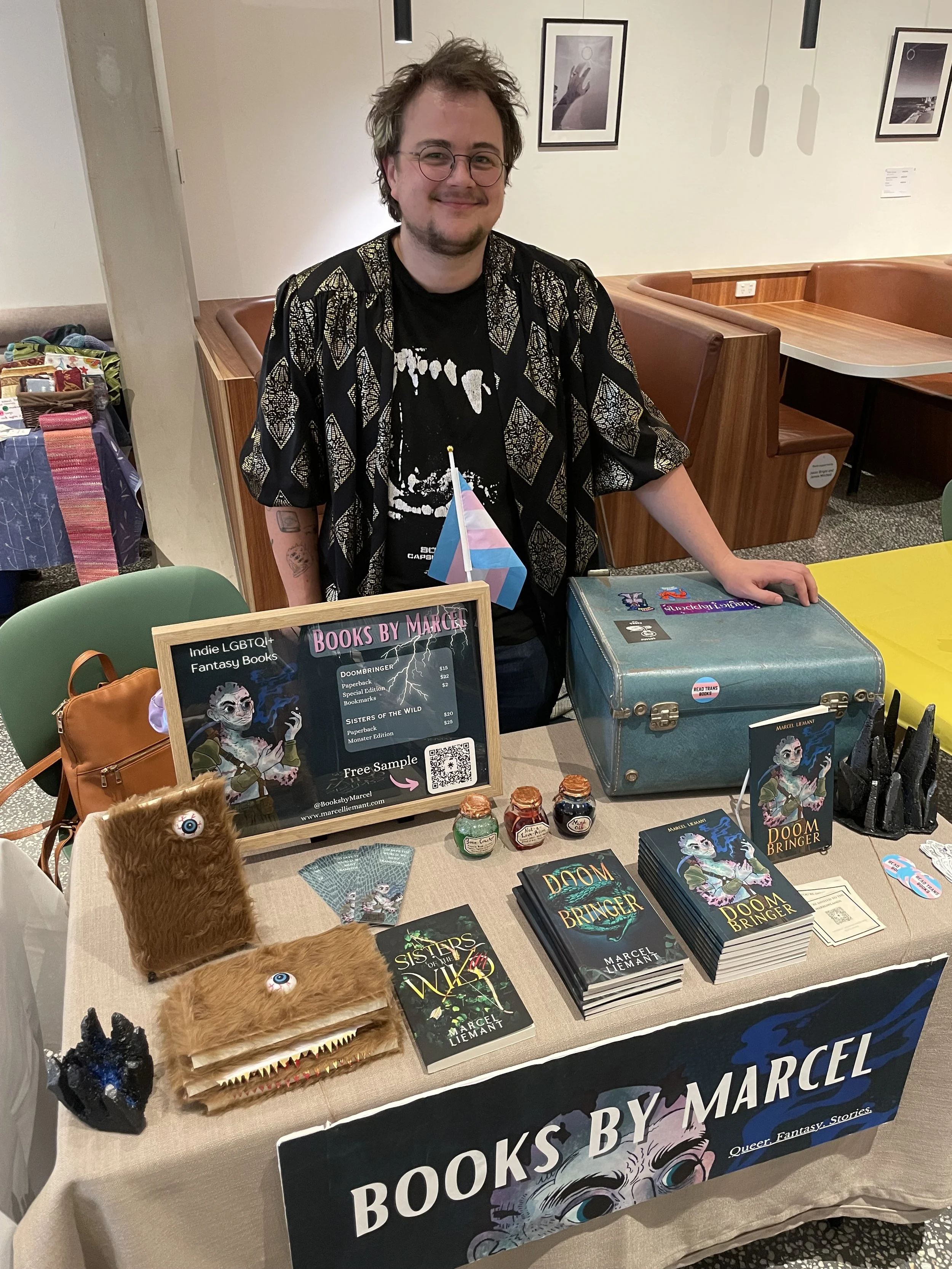 Hello there, I’m Marcel Liemant (they/them) and I’m an Indie Fantasy Author based in Naarm. I write queer-centered magical adventures that explore the power of trans embodiment, the tricks of fate, queer love and community. For budding writers, I teach storytelling and fantasy worldbuilding workshops to the TGD community.